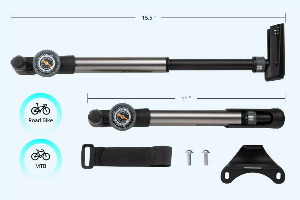 GIYO High Pressure / High Volume switchable mini pump with pressure gauge can handle all of your pumping needs from fat tire to road bike with ease. Aluminum barrel and body for versatility.