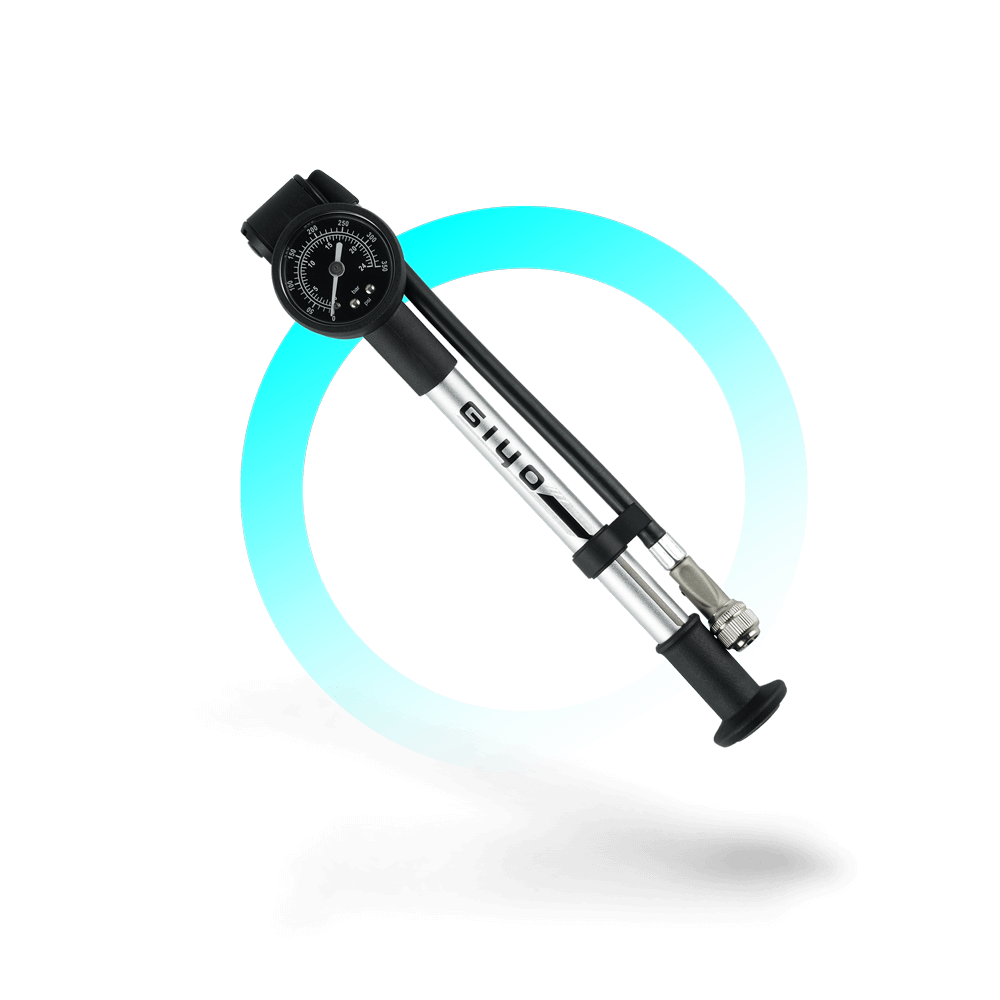 GIYO High Pressure Bike Shock Pump – For Mountain Bike Front Suspension – Aluminum Barrel 1.5″ Dial Gauge Micro Adjust Button. 350 PSI. 360° Rotary Hose for Easy Pumping